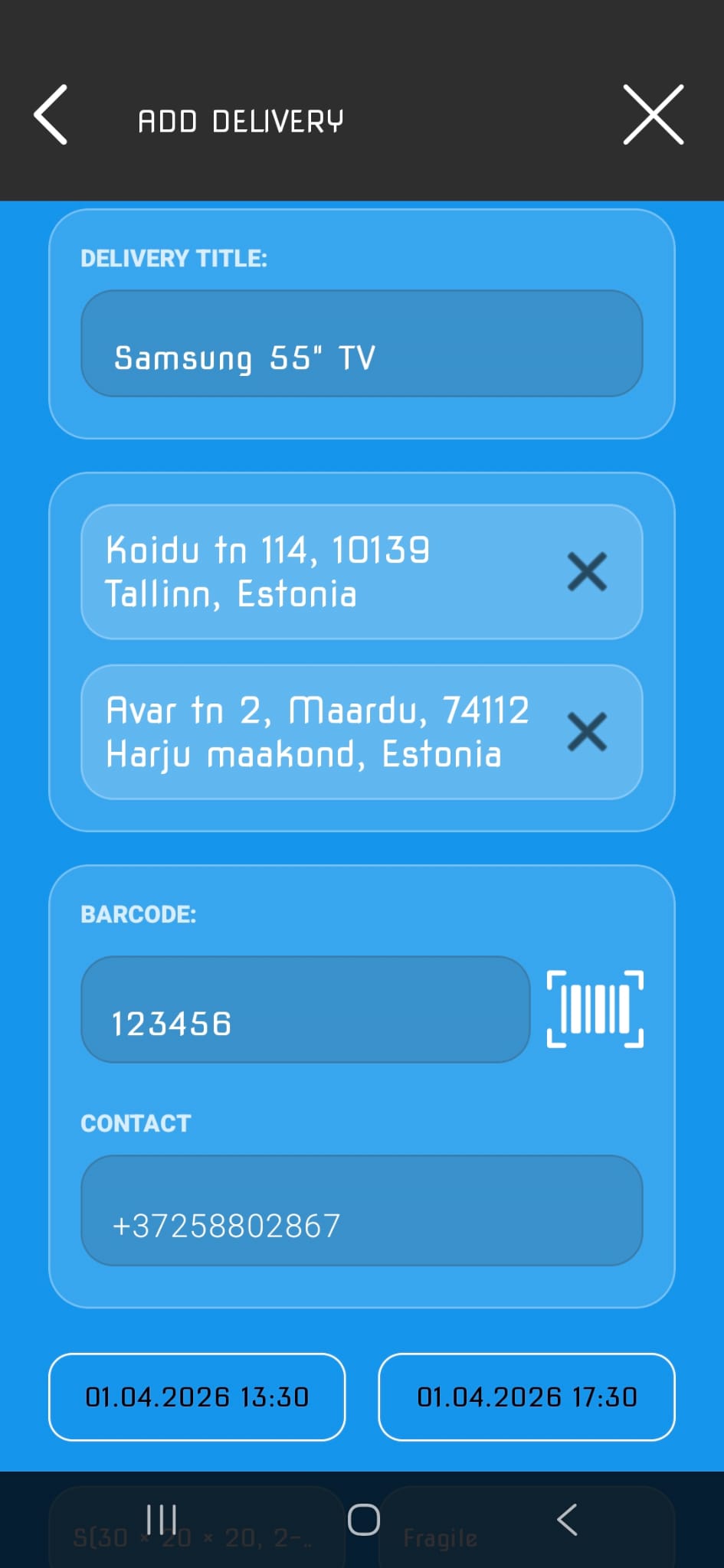 The measurements of a package is important, so that the courier can know if it fits in van.